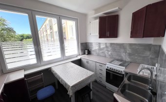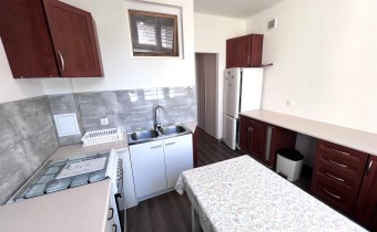 - KITCHEN: 9.5 m², separate with a window, kitchen cabinets, built-in furniture, ARISTON gas stove with oven, BEKO fridge with freezer, sink with battery, electric kettle, table + 3 stools, basic kitchen equipment - plates, cups, cutlery, etc. .