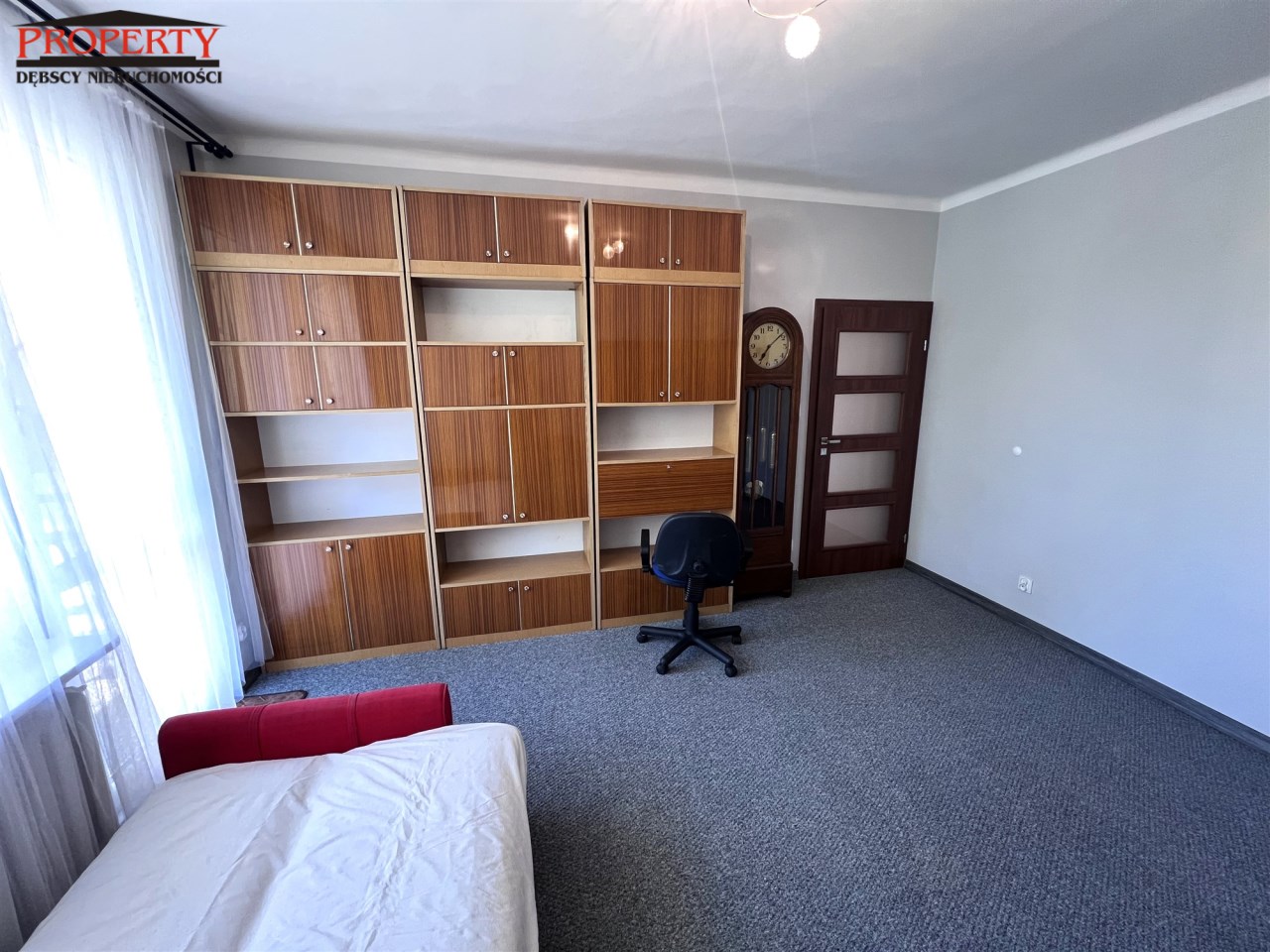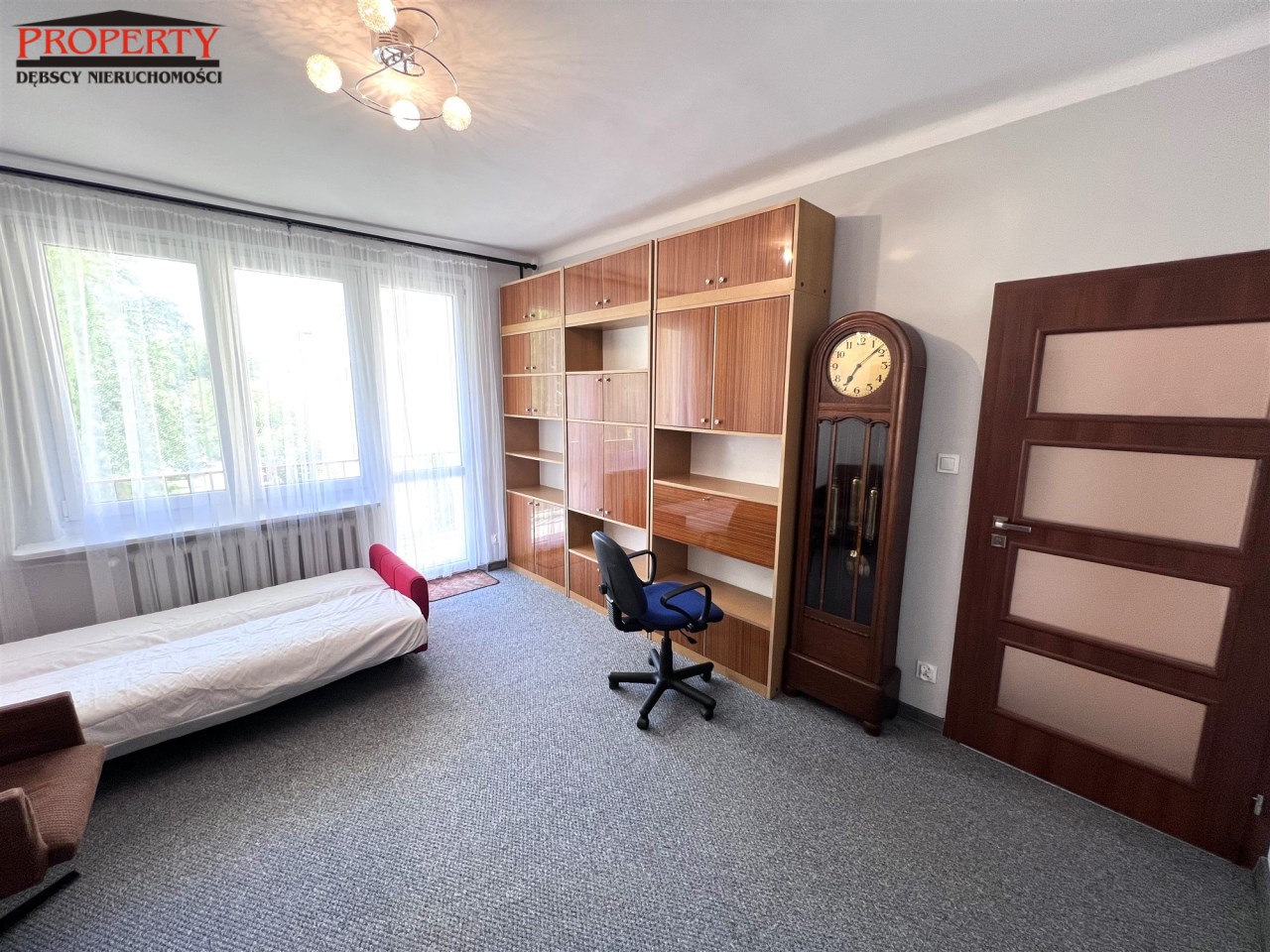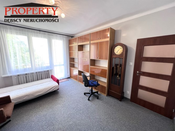 - ROOM No. 3: 16.15 m², fold-out sofa, large 4-door wardrobe, large bookcase, chair on wheels, armchair, antique clock, exit from the room to the balcony facing the yard,