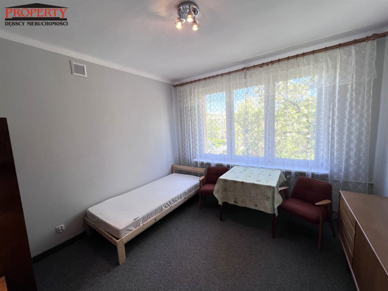 - ROOM No. 1: 13.06 m², single bed, 2-door wardrobe, 2 smaller and larger chests of drawers, table + 2 armchairs, shelf,