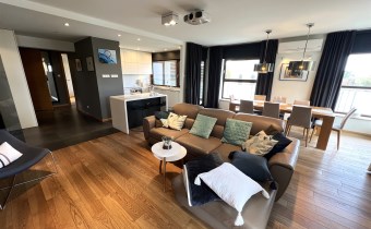 - BUILDING: elegant, 7-story apartment building from 2013, modern, high-speed elevators, entrance hall with reception and a modern monitoring system, high-standard finishing: exterior facades, joinery, and common areas made of noble materials, such as natural stone, exotic wood, stainless steel, multi-story parking for over 120 cars,