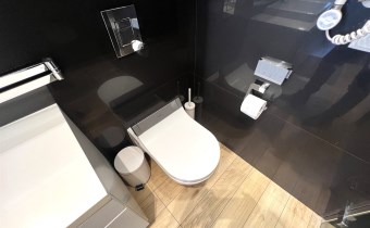 - BATHROOM NEAR THE BEDROOM: 8.4 m², large countertop with two sinks, bathroom cabinets, whirlpool bathtub, shower cabin, Japanese toilet - sink,