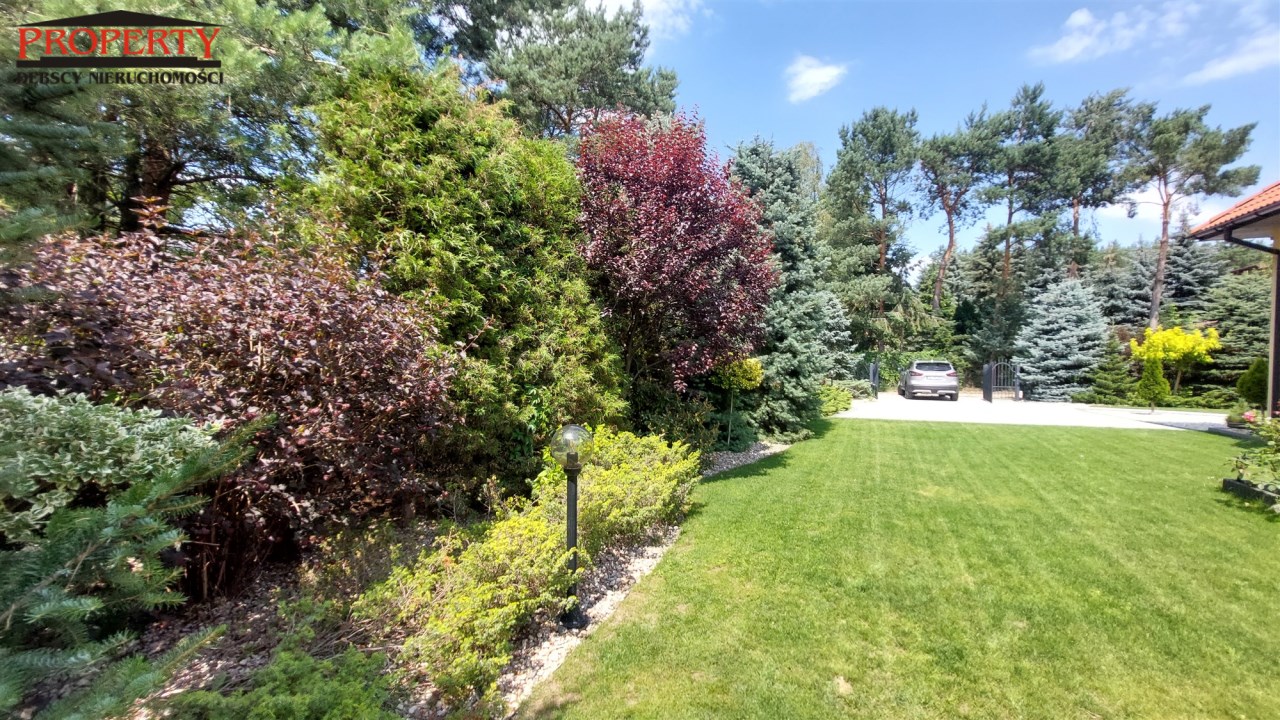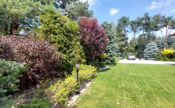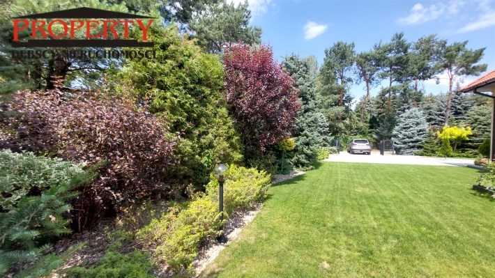 Działka o powierzchni 842m2 jest doskonale utrzymana i przemyślanie zaprojektowana. Liczne nasadzenia roślinne nadają jej niepowtarzalnego uroku. Cała działka jest ogrodzona. Front działki został wyłożony kostką. Wjazd na działkę odbywa się przez automatycznie otwieraną bramę.
