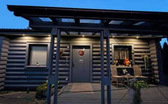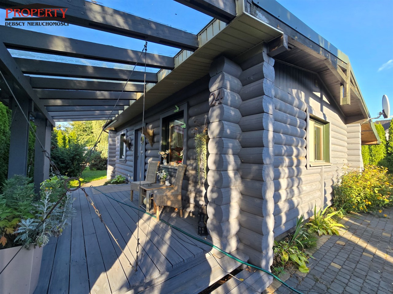 Przykuwający uwagę domek z bala w urokliwej bryle budynku z projektu "Magnus M-Bal".