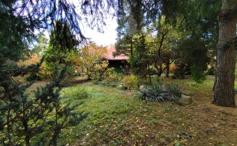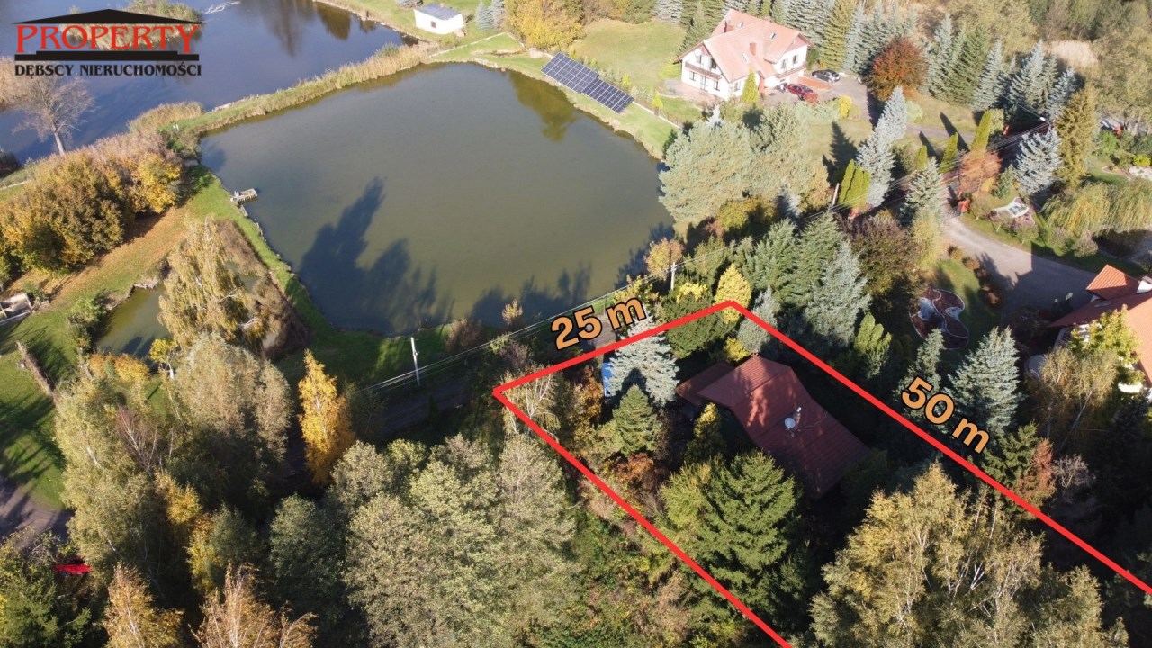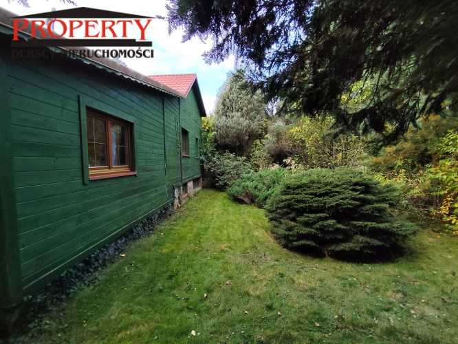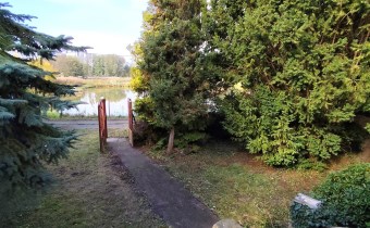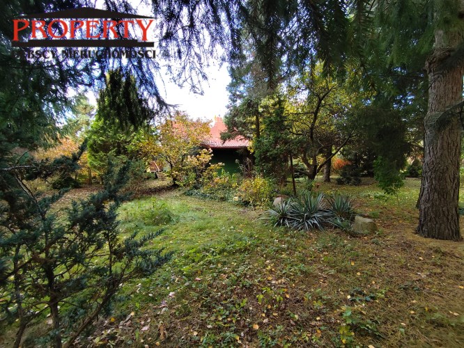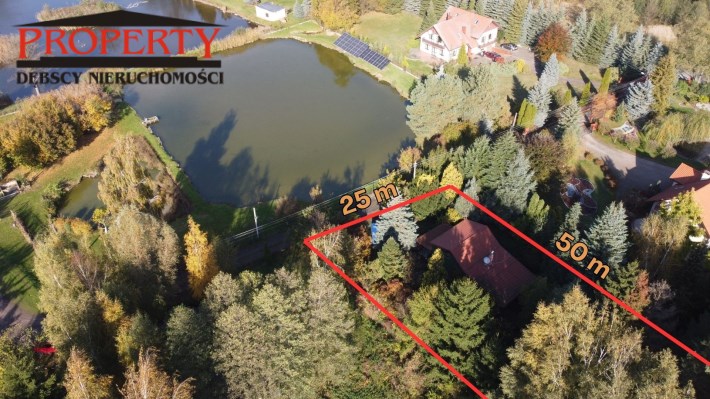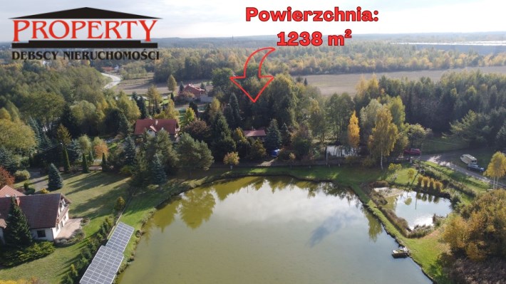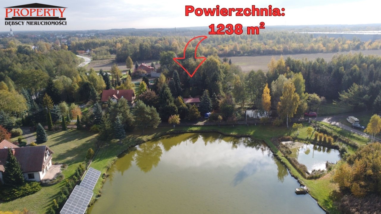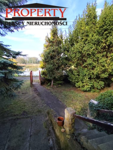 Działka o powierzchni 1238 m² jest w pełni zagospodarowana – dużo zieleni, krzewów oraz przestrzeni do wypoczynku. Nieruchomość od dużego stawu oddziela jedynie droga dojazdowa, co czyni to miejsce idealnym dla w miłośników natury.