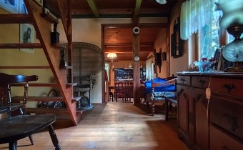 Na sprzedaż wyjątkowy drewniany dom, położony w malowniczej, zielonej okolicy bezpośrednio nad stawem. Idealny dla osób szukających spokoju, natury oraz miejsca na weekendowy odpoczynek lub do zamieszkania na stałe.