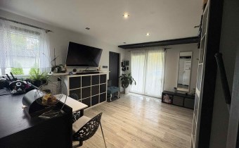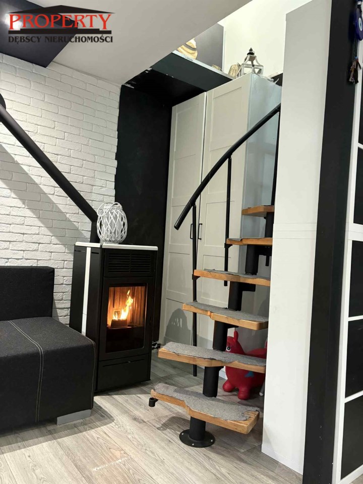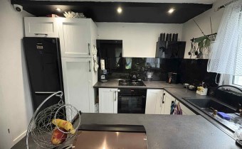- Kuchnia( 10m2) otwarta na Salon o pow14 m2 z wyjściem na piękny duży taras( 16m2) jednocześnie z salonu jest również wejście na piętro schodami z metalowo- drewnianymi.
