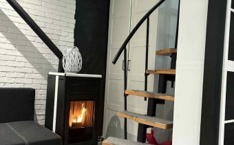 Budynek ogrzewany piecem na palet , podłączony do ogrzewania podłogowego.