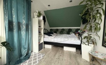- pierwsza sypialnia o pow 12m2 na podłodze panele na ścianach gładzie