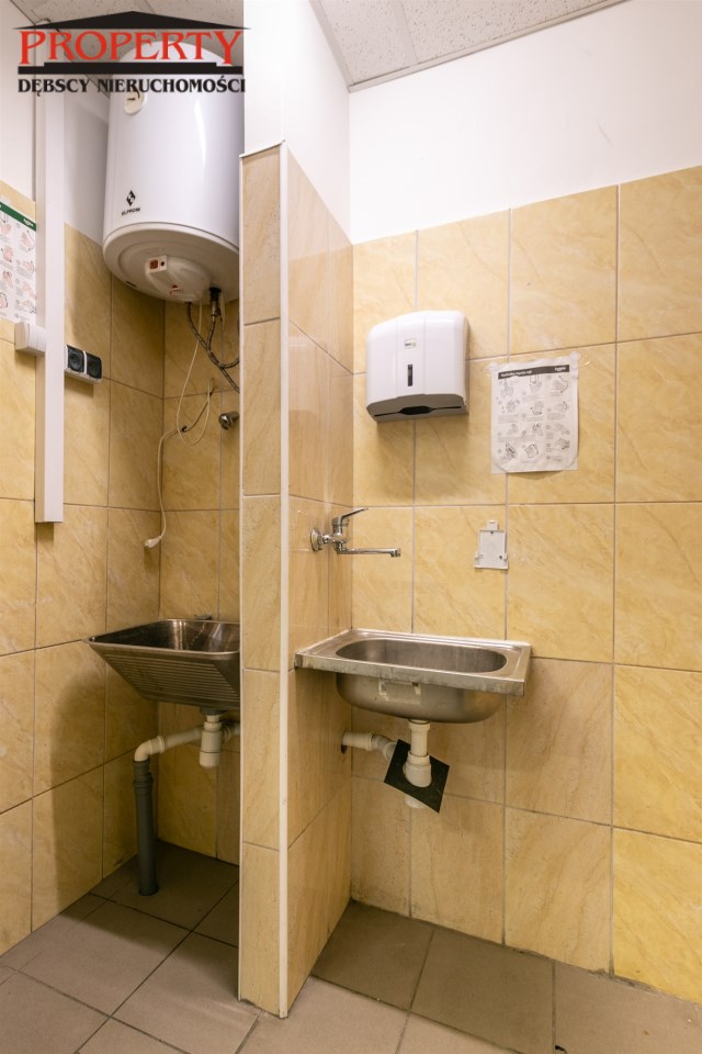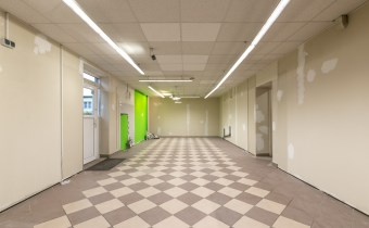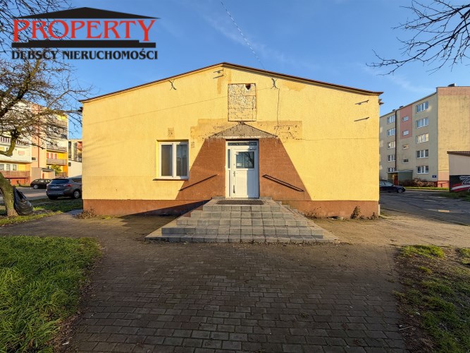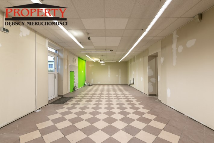Był wynajmowany na sklep Żabka w związku z tym ściany w wewnątrz budynku zostały zaadoptowane pod funkcjonowanie tej działalności.