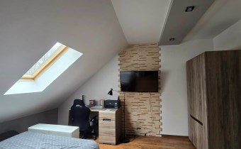 Dom wolnostojący, parterowy z użytkowym poddaszem, niepodpiwniczony o powierzchni użytkowej  140,90m2 z jednostanowiskowym garażem wbudowanym w bryłę budynku ( 18,90 m2 ).