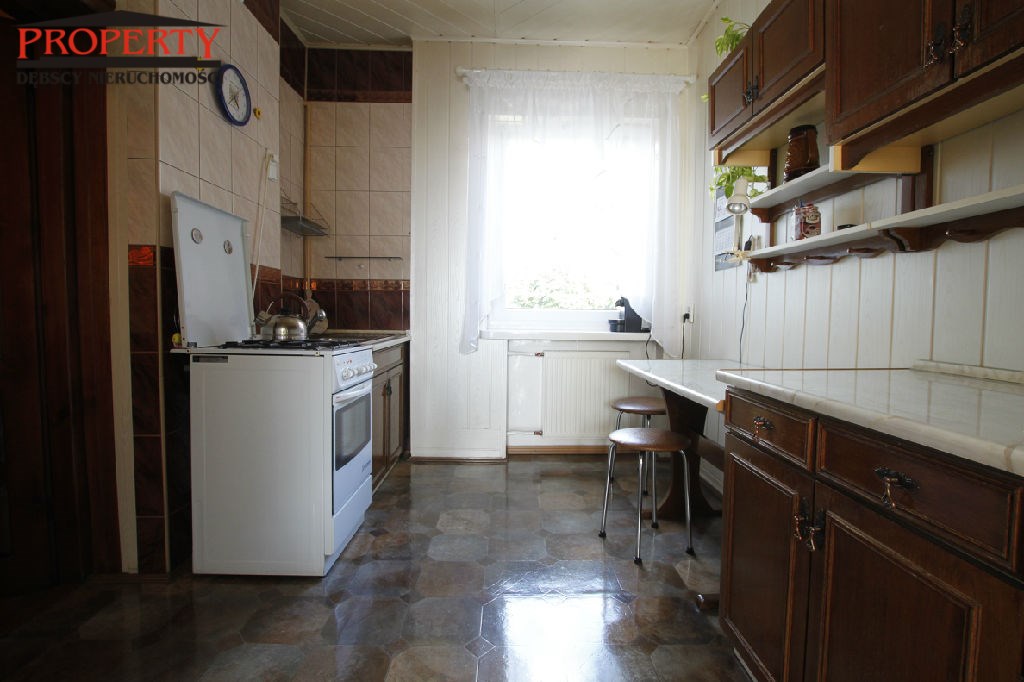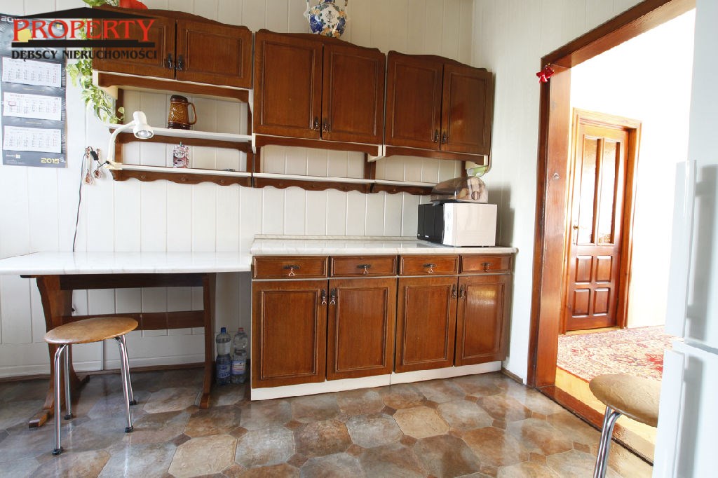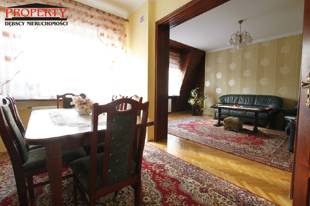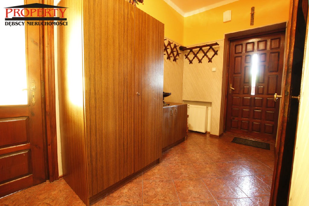 W domu znajduje się przestronny salon o pow. 35 m2, kuchnia 9,50 m2, korytarz 7,50 m2, dwie łazienki wyposażone w wannę, kabinę prysznicową oraz  4 pokoje przestronne, ustawne o powierzchni 18,50 m2, 17 m2, 14,5 m2, 9,14 m2. W całym domu  na ścianach gładzie, malowane, częściowo tapety.  Na podłodze panele, terakota, parkiet. W łazienkach  glazura i terakota nowego typu.  W całym domu  okna PCV, centralne ogrzewanie gazowe.
