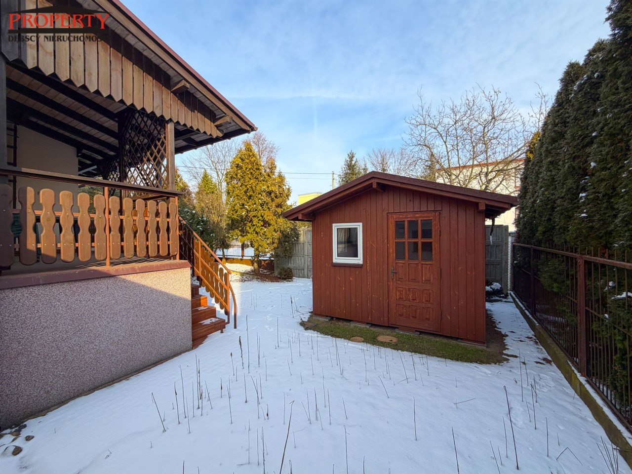 Działka o powierzchni 530 m2, ogrodzona z bramą wjazdową. Do domu dobudowana jest wiata od strony wjazdu na posesję.