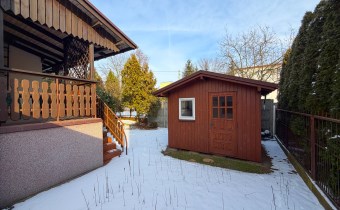 W bryle budynku  znajduje się garaż, do którego dochodzi  wiata oraz na posesji znajduje się niewielki budynek gospodarczy, idealny do przechowywania narzędzi ogrodowych, rowerów czy sprzętu sezonowego.