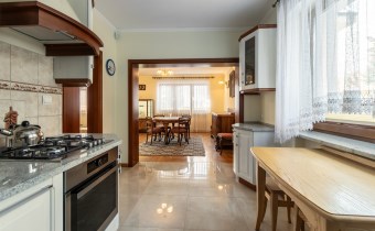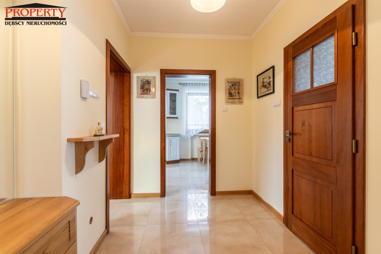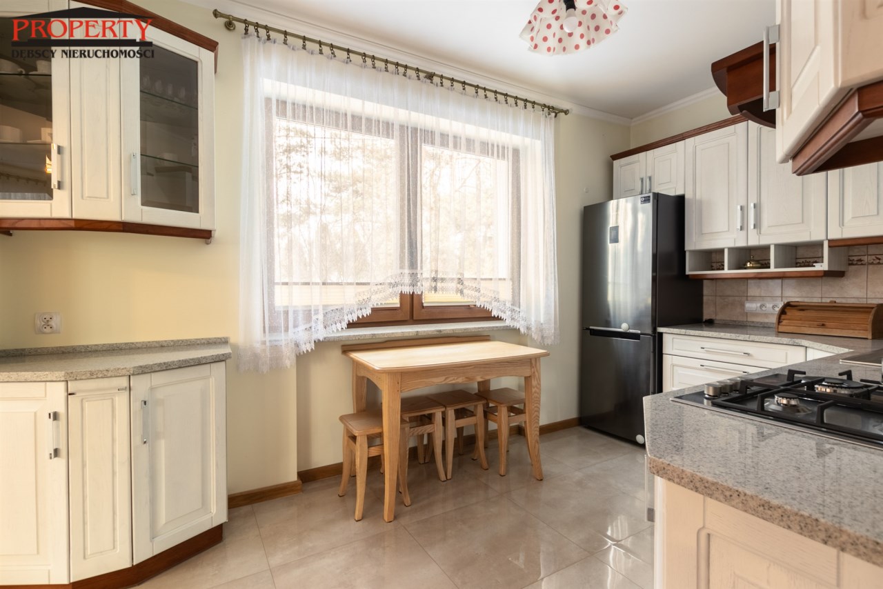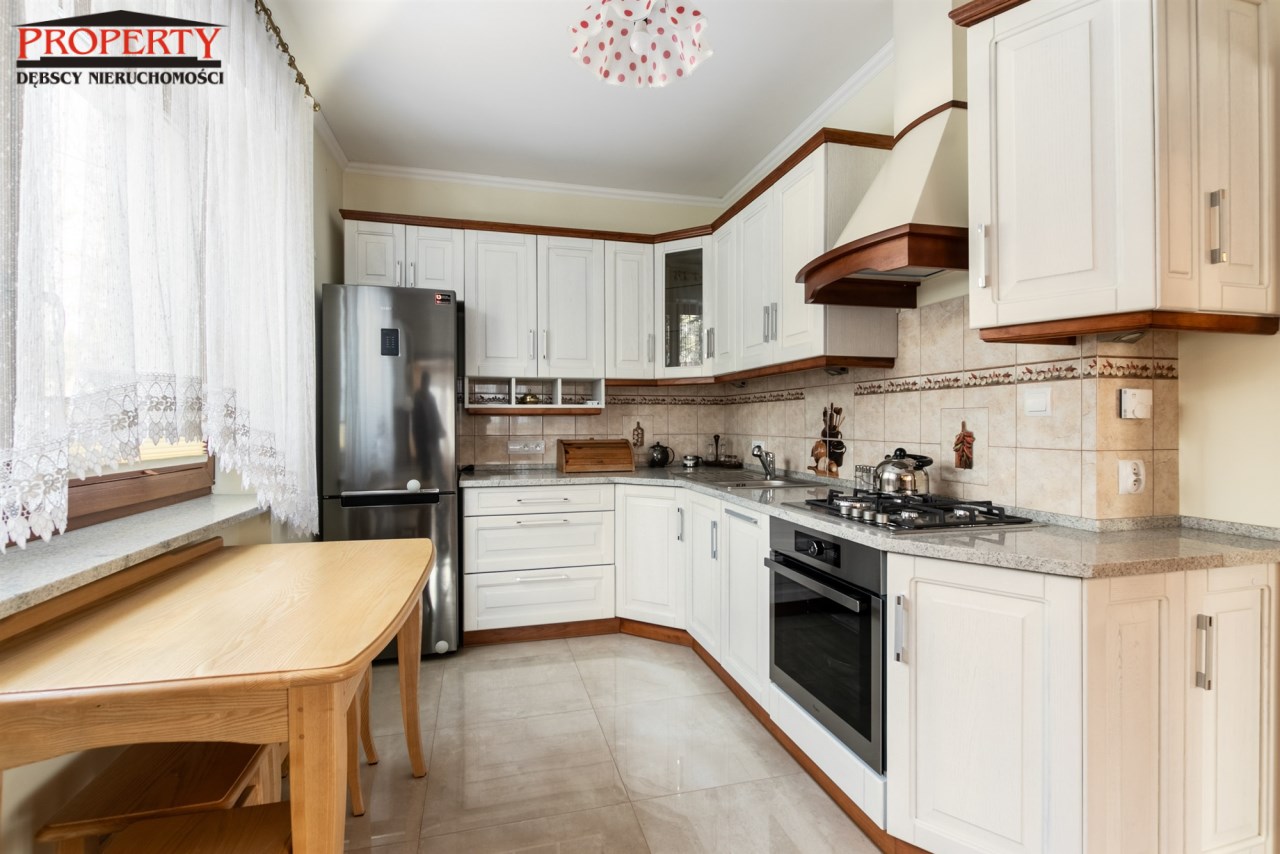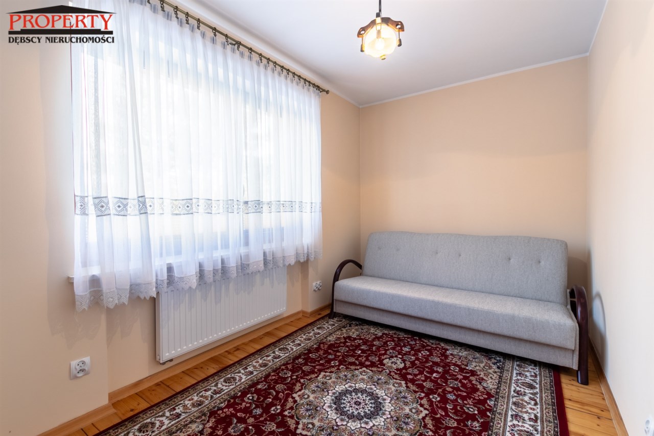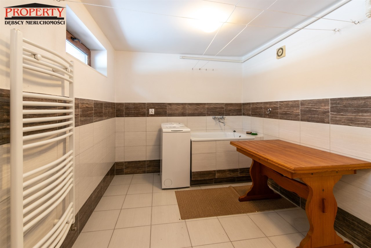 Dom po modernizacji, nowe centralne ogrzewanie (piec gazowy), podłogi drewniane dębowe i sosnowe, ściany odmalowane, podłogi w częściach korytarzowych i  kuchni nowy gres, łazienki  po remoncie. Układ i funkcjonalność  idealna. Dom do wprowadzenia, nie wymaga nakładów. Ten dom to idealne miejsce do zamieszkania dla rodziny z dziećmi, koszt utrzymania niski, dostępność do funkcjonowania w zasięgu ręki.