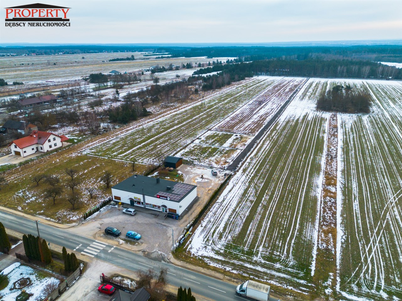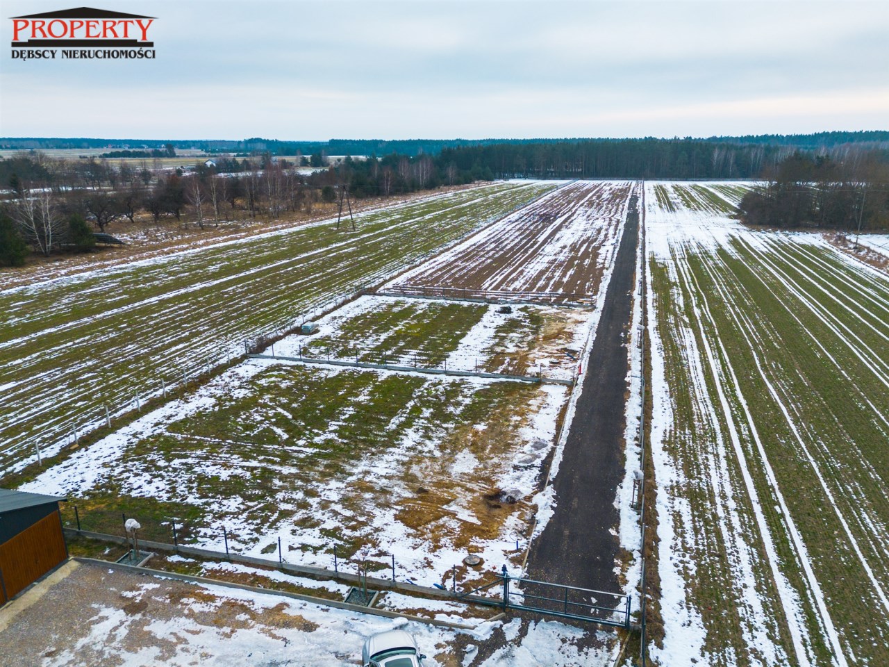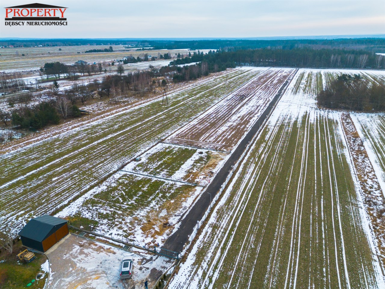 dojazd drogą gminną, poprzez drogę wewnętrzną utwardzoną, oświetloną,