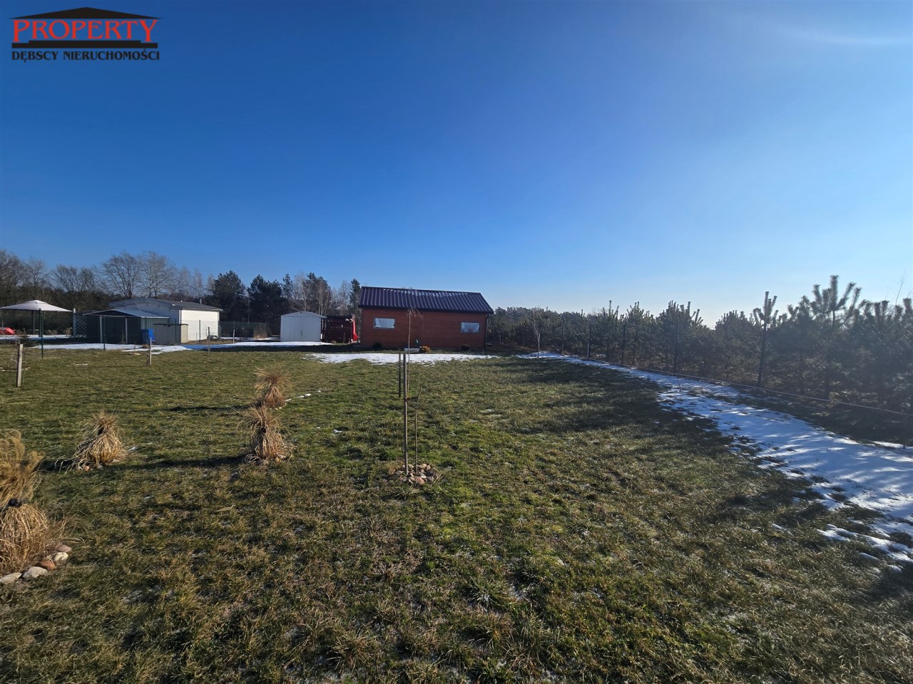 Działka kompletnie przygotowana do budowy domu jednorodzinnego. Do wykorzystania latem zabudowany domek holenderski na czas budowy lub traktowana jedynie jako letniskowa. W domku znajdują się dwa pokoje, łazienka, aneks kuchenny wyposażony w lodówkę i kuchenkę. Taras na zewnątrz tworzy spójną całość z zabudową domku.