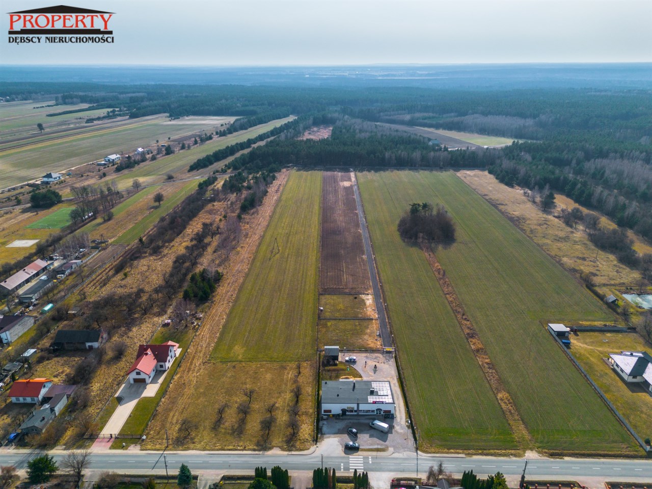 dojazd drogą gminną, poprzez drogę wewnętrzną utwardzoną, oświetloną,