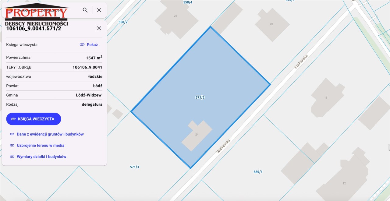 Prezentowana nieruchomość gruntowa, położona jest we wschodniej części Miasta Łodzi, przy ul. Szafrańskiej 24, to obszar dzielnicy Widzew.