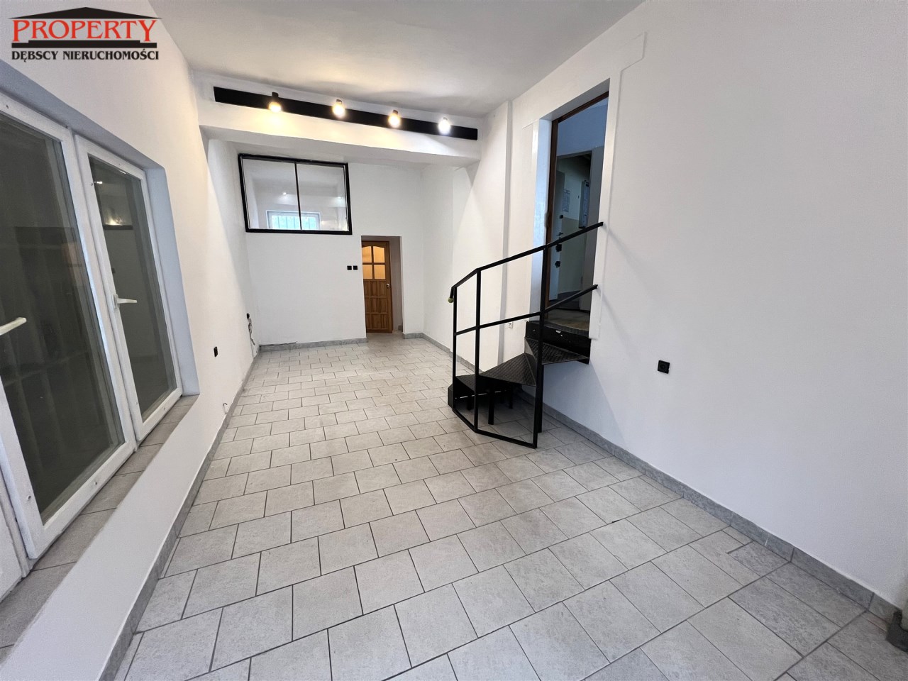 - POMIESZCZENIE I - SALA GŁÓWNA (SALA SPRZEDAŻY) - 22,43 m2, podłoga terakota, ściany tynk tradycyjny, świeżo pomalowane, duże okno frontowe przy wejściu, w tylnej części nieduży magazyn, obok wc z umywalka, w środkowej części sali metalowe schody kręcone z wejściem do pomieszczeń biurowych ok. 1m powyżej,