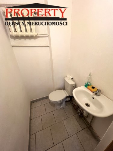 - WC: na zapleczu sali głównej, obok magazynu, 2,9 m2, sedes, umywalka, -