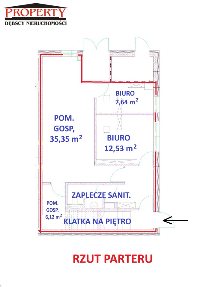 | DO WYNAJĘCIA 2 LOKALE - PARTER i PIĘTRO - razem lub osobno LOKALE nadają się na USŁUGI w tym MEDYCZNE, KOSMETYCZNE, KANCELARIE, BIURA, na HANDEL - SHOW-ROOM i inne usługi - bardzo dobra lokalizacja w sąsiedztwie centrum handlowego. PIERWSZY - LOKAL na BIURO-USŁUGI na I piętrze - 1 piętrowego budynku - powierzchnia 75 m - cena 2500 zł + VAT + opłaty eksploatacyjne wg zużycia - kaucja 5000 zł W ofercie pierwsze zdjęcia i plan DRUGI - LOKAL na BIURO-USŁUGI na PARTERZE - 1 piętrowego budynku - powierzchnia 75 m - cena 2500 zł + VAT + opłaty eksploatacyjne wg zużycia - kaucja 5000 zł W ofercie dalsze zdjęcia i plan ELEGANCKI BUDYNEK biurowo-usługowy, o łącznej powierzchni 150m, położony na parterze i na piętrze, KLATKA SCHODOWA - z niej wejście do lokalu na parterze i schody do lokalu na piętrze Do wynajęcia w CAŁOŚCI lub ODDZIELNIE PARTER i ODDZIELNIE PIĘTRO Z KLATKI SCHODOWEJ wejście do lokalu na parterze + schodami wejście do lokalu na piętrze Po 2 miejsca parkingowe do PARTERU i PIĘTRA przed budynkiem budynkiem dla Najemcy/ów. POWIERZCHNIA 150m - po 75m na każdej kondygnacji WYSOKOŚĆ pomieszczeń 2,6 m Możliwe wynajęcie każdej kondygnacji osobno lub całości Opłaty eksploatacyjne wg zużycia - liczników mediów + śmieci PIĘTRO - na zdjęciach jako pierwsze : - DUŻA SALA 39,70 m - podłoga panele, ściany gładzie gipsowe, duże panoramiczne okna - POKÓJ 15,75 m - podłoga panele, ściany gładzie gipsowe, duże okna - Zaplecze SOCJALNE - kuchnia - podłoga terakota, meble kuchenne ze zlewozmywakiem, lodówką, zmywarką - Zaplecze SANITARNE - WC i PRYSZNIC ZAPLECZE SOCJALNE + SANITARNE razem 15.02 m PARTER - na zdjęciach jako drugi : - duży POKÓJ 35,35 m - terakota na podłodze , gładzie gipsowe, okno PCV - przy tym pokoju Pomieszczenie gospodarcze 6,12 m - POKÓJ 12,53 m - panele podłogowe , gładzie gipsowe, okno PCV - POKÓJ 7,64 m - panele podłogowe , gładzie gipsowe, okno PCV - zaplecze sanitarne WC + pomieszczenie z umywalką - HOL - terakota na podłodze, ściany gładzie gipsowe UWAGA! Oferty na naszych stronach nie stanowią ofert w rozumieniu kodeksu cywilnego. Podane dane mają charakter wyłącznie informacyjny i mogą odbiegać od stanu faktycznego. Opis obiektu został sporządzony na podstawie informacji przekazanych przez Oferującego. Oferta może być juz nie aktualna. Prosimy o telefon. |