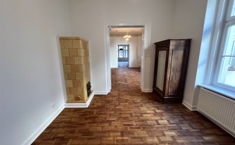 34,8 m², w pokoju ozdobny piec kaflowy, oryginalne wykończenia sufitów, okno na podwórko, z niego przejście przez duże podwójne drzwi do małego pokoju przejściowego - UWAGA: