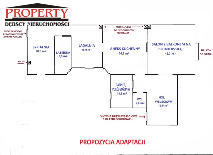 UWAGA ! W OFERCIE PRZEDSTAWIONA PROPOZYCJA ADAPTACJI MIESZKANIA POD WARUNKIEM INNEGO USYTUOWANIA PIECA GAZOWEGO - DO SKONSULTOWANIA Z ARCHITEKTEM I KOMINIARZEM