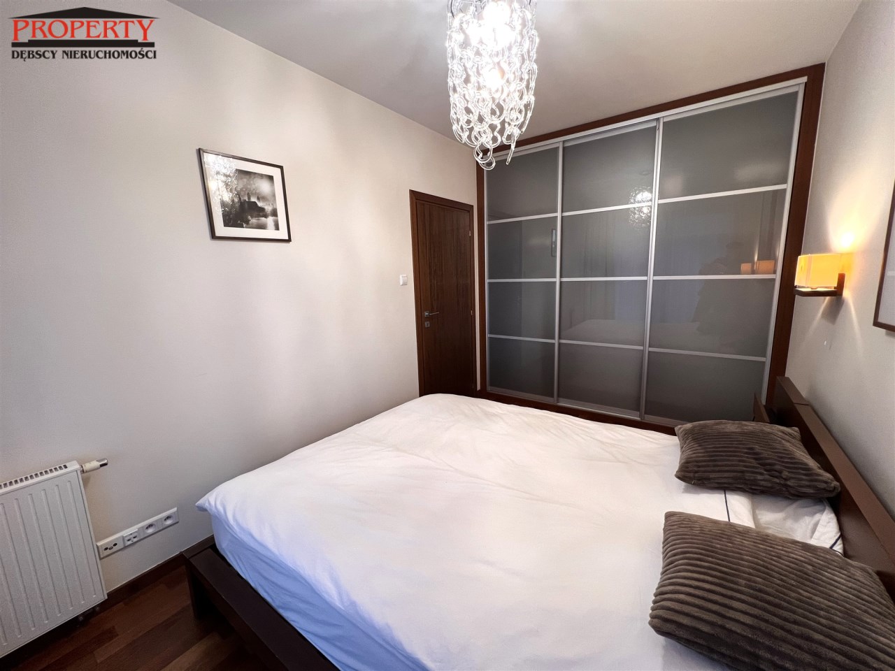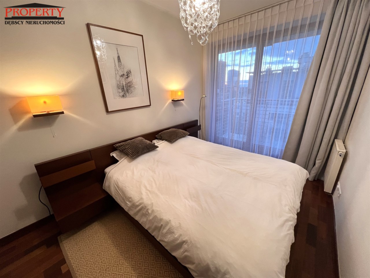 - SYPIALNIA GŁÓWNA: 10,4 m², łóżko podwójne, 2 szafki nocne, 2 kinkiety, szafa garderoba w zabudowie, wyjście na balkon,