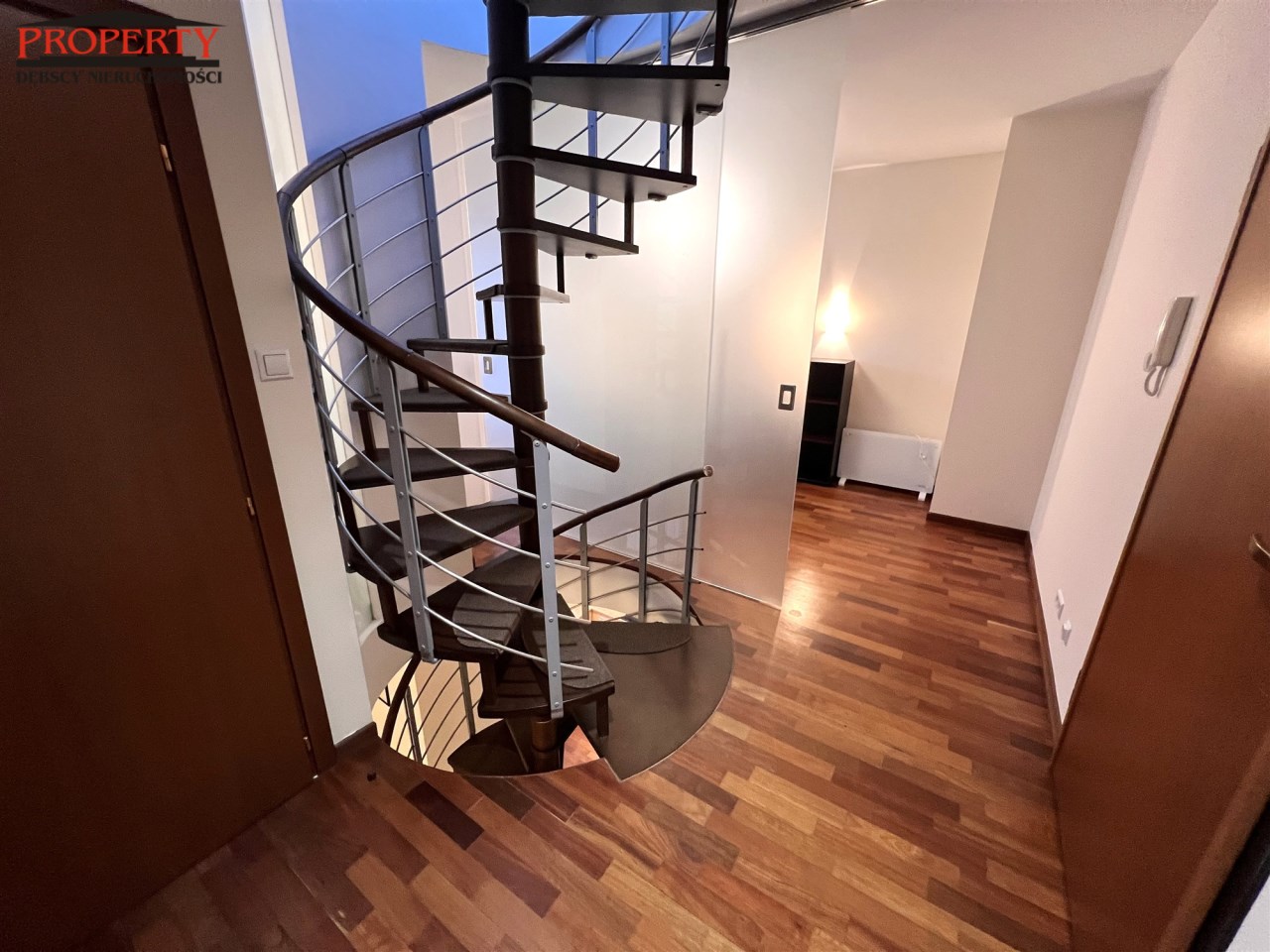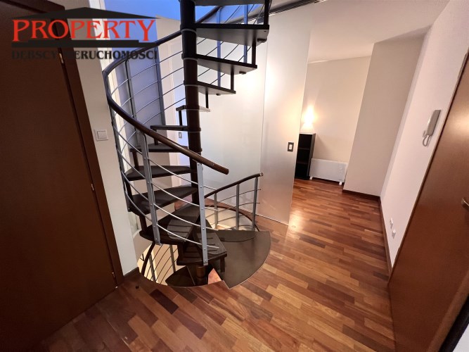 , z szafą wnękową, wejście na pierwszy poziom z korytarza z przed ostatniej kondygnacji budynku z windą,