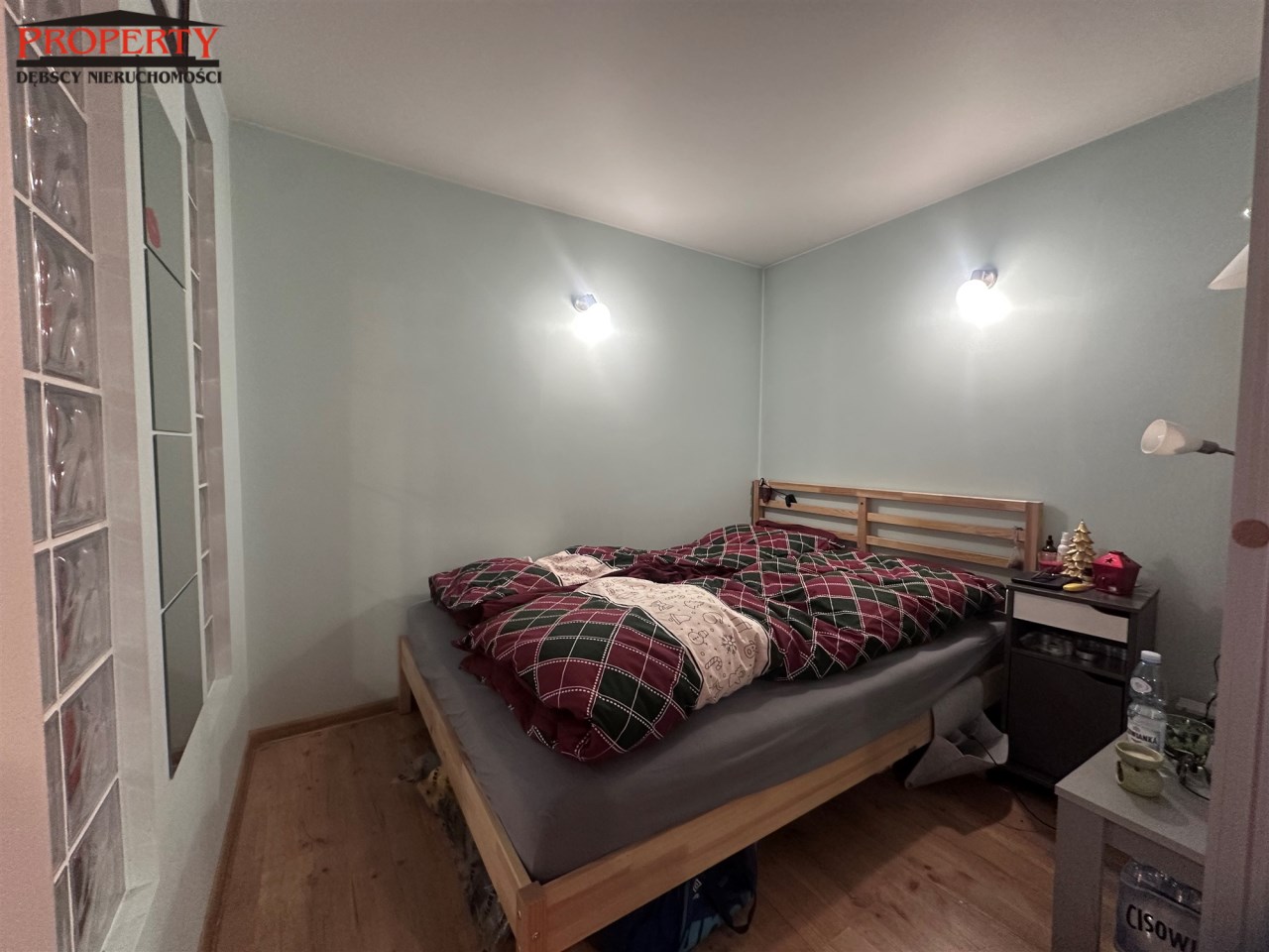 - sypiania o pow 5m2 na podłodze panele, ściany gładź orz jedna ściana w luxfery co daje nam dostęp do światła