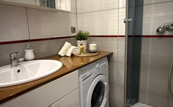 ŁAZIENKA z WC-  kabina prysznicowa, umywalka, szafka na kosmetyki, pralka