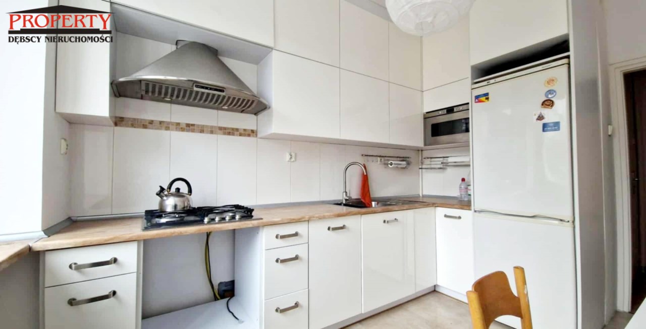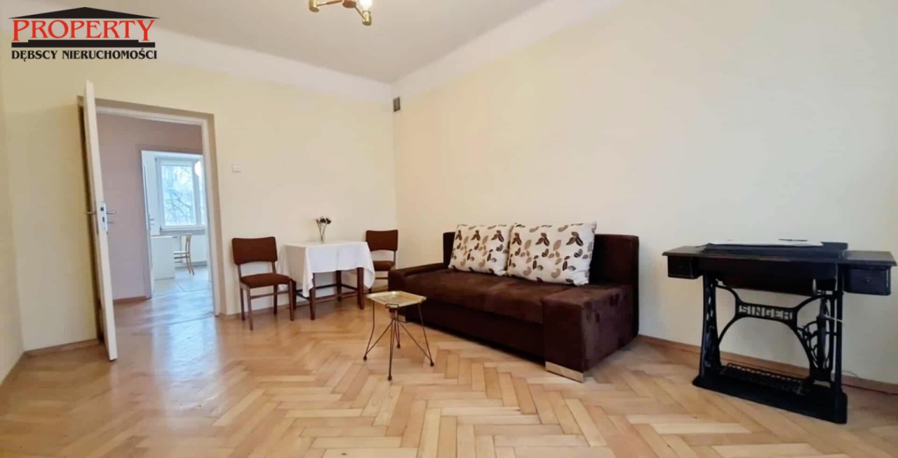 Mieszkanie dwupokojowe w pełni rozkładowe, ustawne, widne pokoje. Jeden pokój na planie kwadratu, drugi prostokąta. Wysokość w pomieszczeniach 2,75 m. Na podłodze ładny bukowy parkiet, po gruntownej renowacji czyli ponownym zerwaniu, przełożeniu, cyklinowaniu i polakierowaniu. Mieszkanie do odmalowania i do zamieszkania. W jednym pokoju jest wbudowana szafa w wnękowa, z zamykanym biurkiem. W kuchni nowe meble pod wymiar. Łazienka z wanną, umywalką i wc.