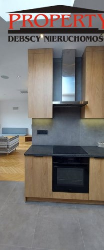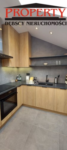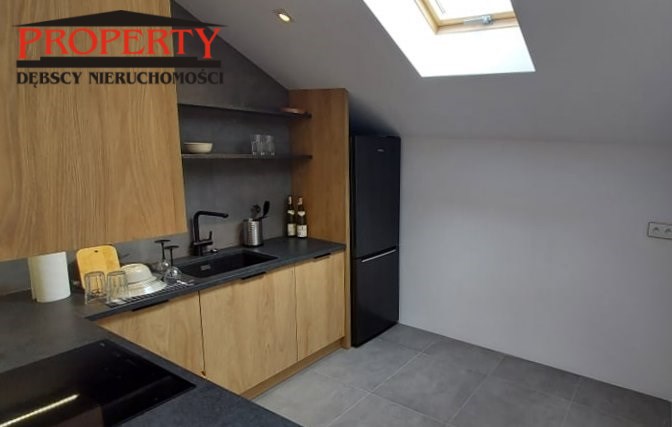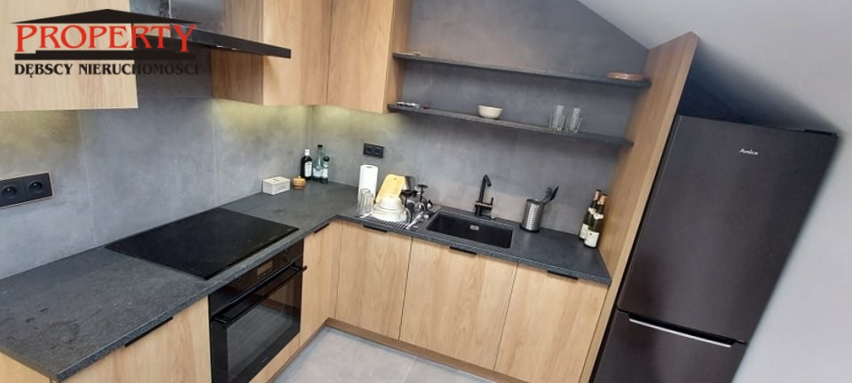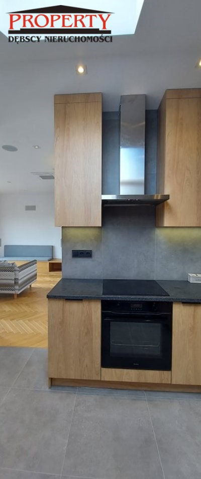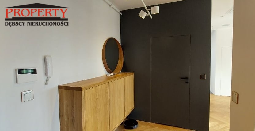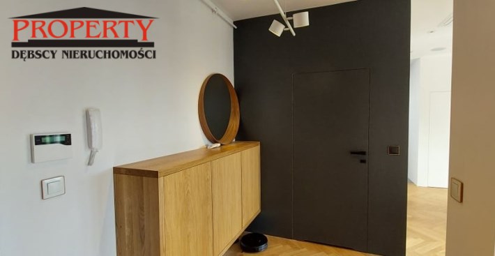 Meble i sprzęt AGD na wyposażeniu: zmywarka, lodówka z zamrażarką, płyta indukcyjna, piekarnik, czajnik, pralko-suszarka, telewizor, odkurzacz iRobot, zestaw nagłośnieniowy zabudowany w ścianach i suficie.