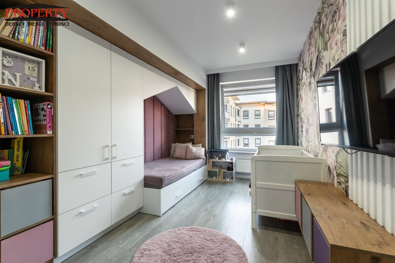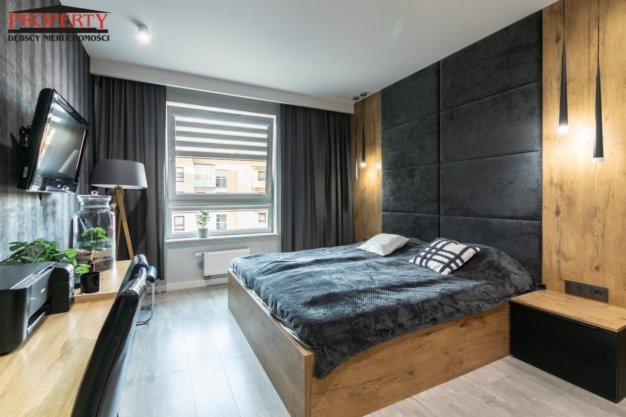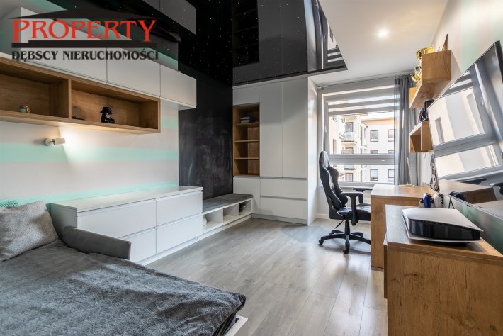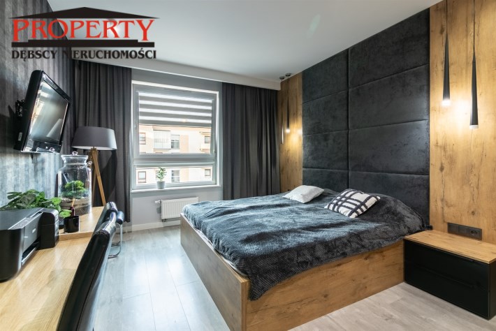 Mieszkanie o powierzchni 95,37 m² i znajduje się trzecim piętrze budynku z windą. Składa się z salonu połączonego z aneksem kuchennym,  pomieszczenia gospodarczego (spiżarnia), trzech sypialni, łazienki z wc.  Całość została urządzona w eleganckim i nowoczesnym standardzie.