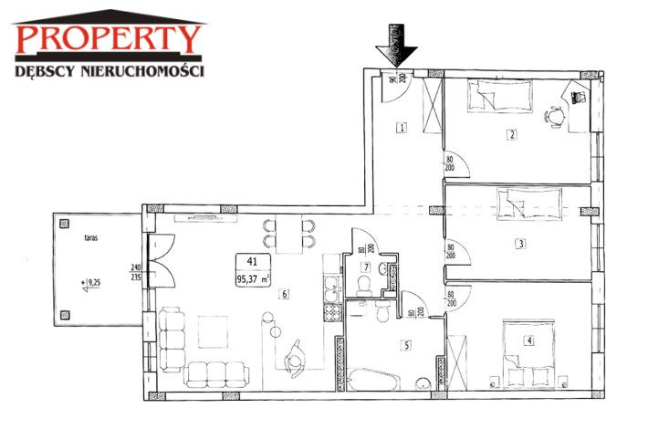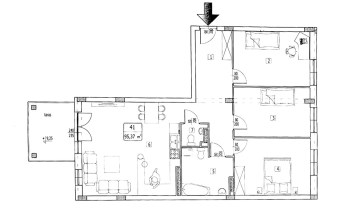 Mieszkanie o powierzchni 95,37 m² i znajduje się trzecim piętrze budynku z windą. Składa się z salonu połączonego z aneksem kuchennym, pomieszczenia gospodarczego (spiżarnia), trzech sypialni, łazienki z wc. Całość została urządzona w eleganckim i nowoczesnym standardzie.