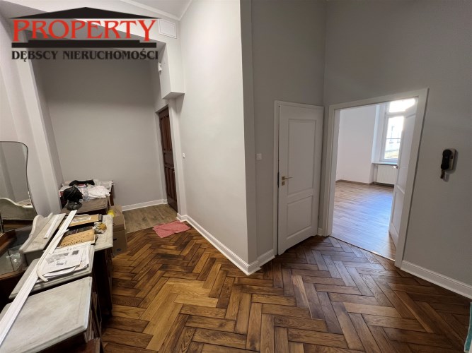 mieszkanie po generalnym remoncie, łącznie z wymianą instalacji elektrycznej i wod-kan, odtworzone oryginalne wykończenia sufitów, na ścianach gładzie gipsowe, pomalowane, oryginalne, zabytkowe oświetlenie w części pokoi, na podłogach w większości pokoi oryginalny parkiet dębowy wycyklinowany i świeżo po olejowaniu, (w pokoju przy kuchni panele laminowane, w kuchni panele winylowe), w holu wejściowym parkiet i przy samym wejście terakota, w łazience i w wc nowa glazura i terakota,