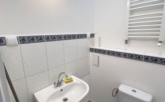 - WC: 2,0 m², przy holu wejściowym, sedes, umywalka, elektryczny przepływowy podgrzewacz wody,