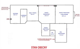 Powierzchnia pokoi 42;34,8;16;14,4 m2