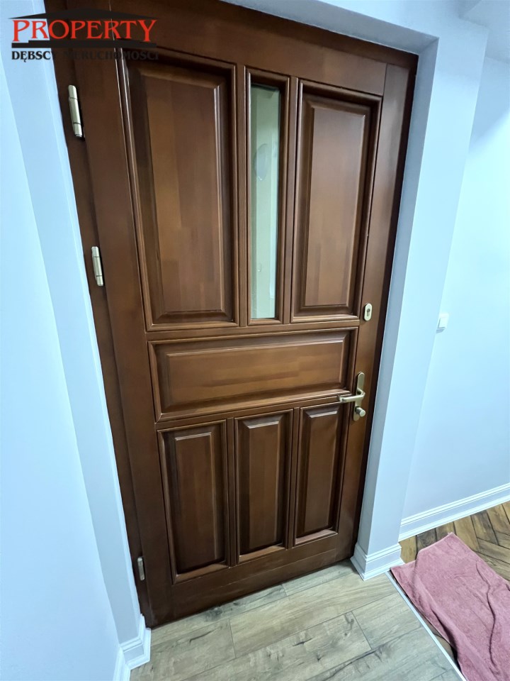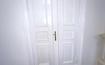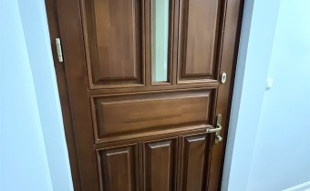 zewnętrzne drzwi wejściowe antywłamaniowe, drzwi wewnętrzne w większości oryginalne, po usunięciu starej farby, pomalowane na nowo, w części pomieszczeń założone nowe drzwi w stylu nawiązującym do drzwi oryginalnych,