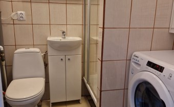 Łazienka: wc, glazura, terakota; kabina prysznicowa, pralka (nowa)
