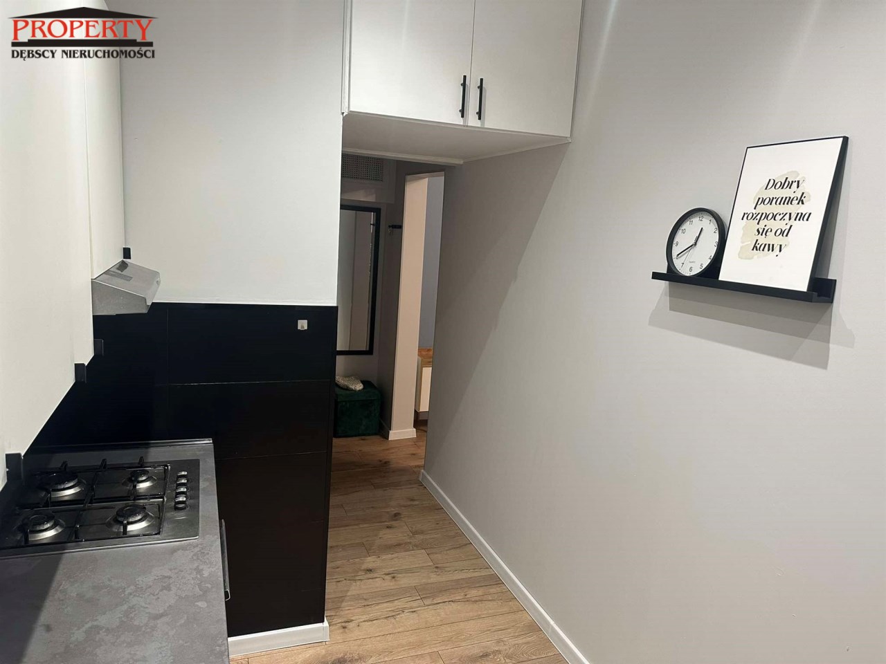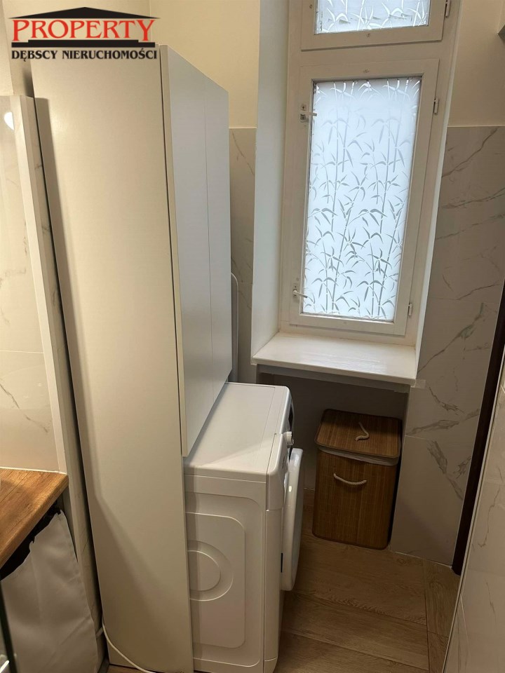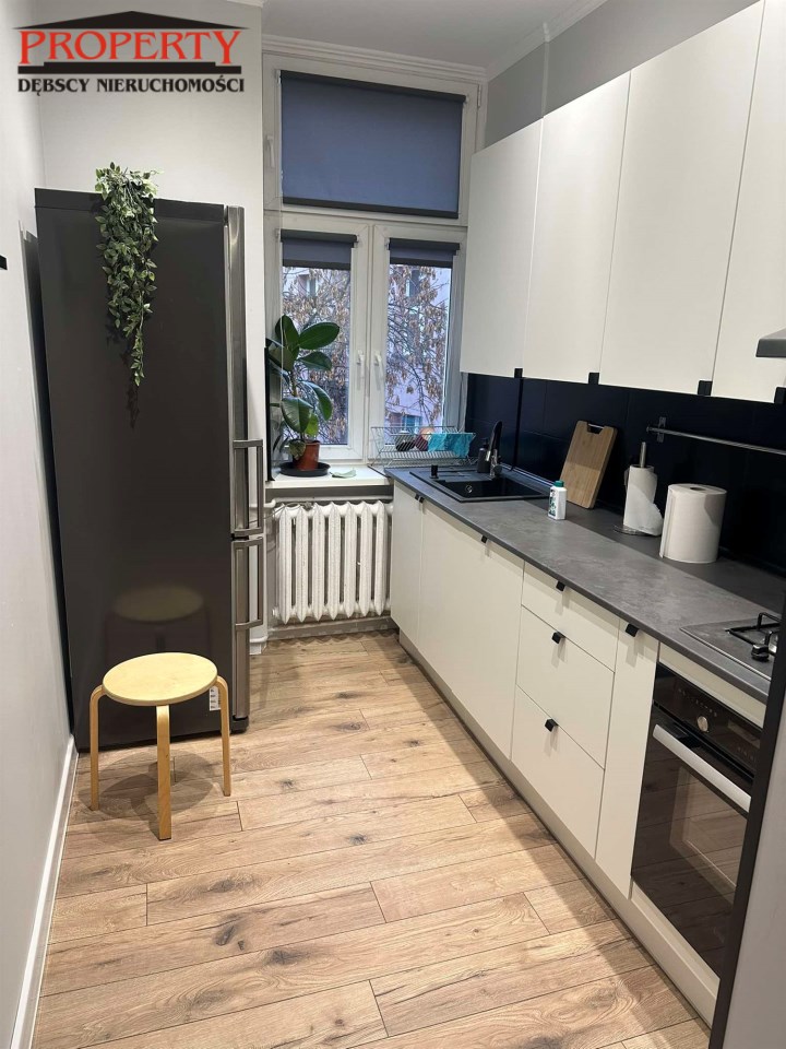 Z przedpokoju o pow 4m2 oddzielne wejścia do wc  o pow 1,2 ( glazura, terakota) oraz kuchni o pow 7,30 umeblowanej całkowicie ( zmywarka, lodówka, płyta oraz piekarnik)