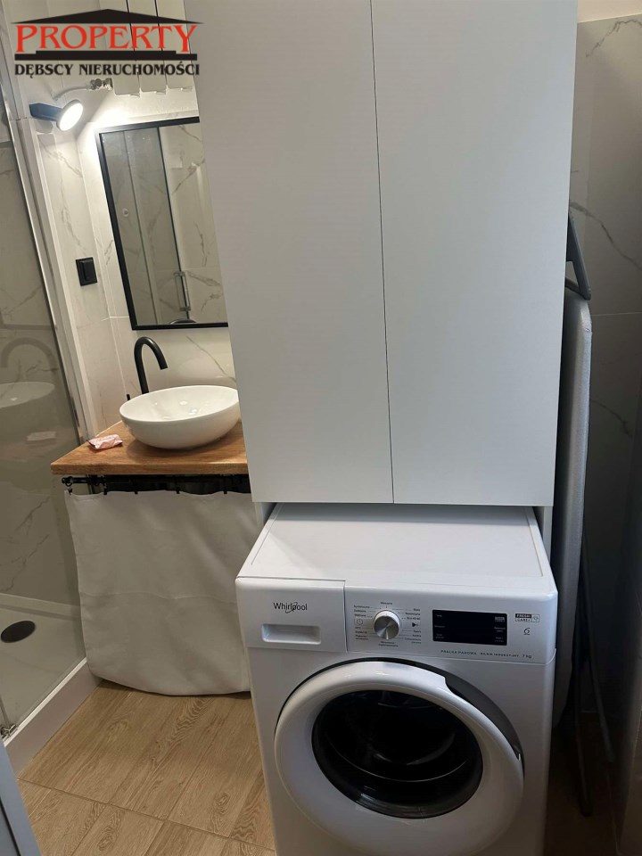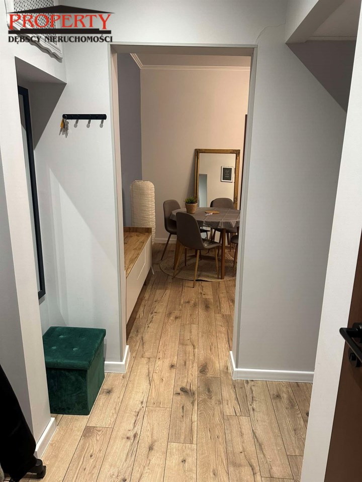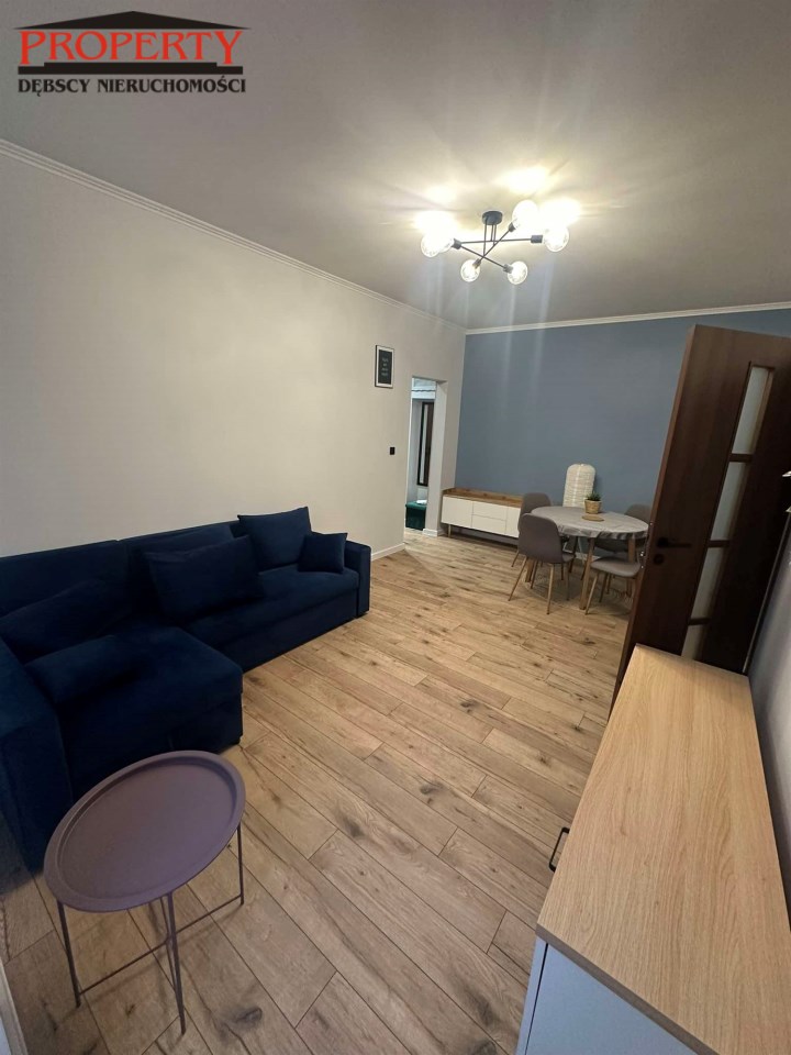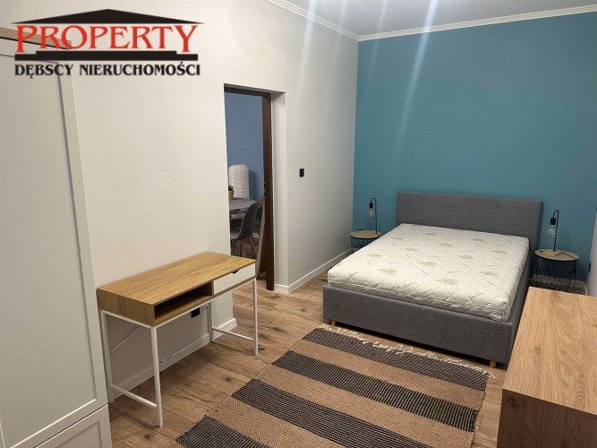 Mieszkanie jest  umeblowane - wyposażone , co ułatwi od razu zamieszkanie i składa się z salonu o pow 20m2( wyjście na balkon)w pokoju tym znajduj się kanapa narożna, stolik RTV , komoda , stół 4 krzesła, stolik kawowy, drugiego mniejszego pokoju tz. sypialnia o pow 14m2 na wyposażeniu łózko 2 osobowe , lampki nocne , biurko i komoda oraz dywan z tego pokoju jest wejście do łazienki  o pow 4m 2 ( natrysk, pralka , umywalka z lustrem).