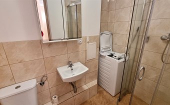- ŁAZIENKA+ WC: ok. 3,5 m kw, nowoczesna glazura i terakota, kabina prysznicowa, umywalka, sedes, pralka