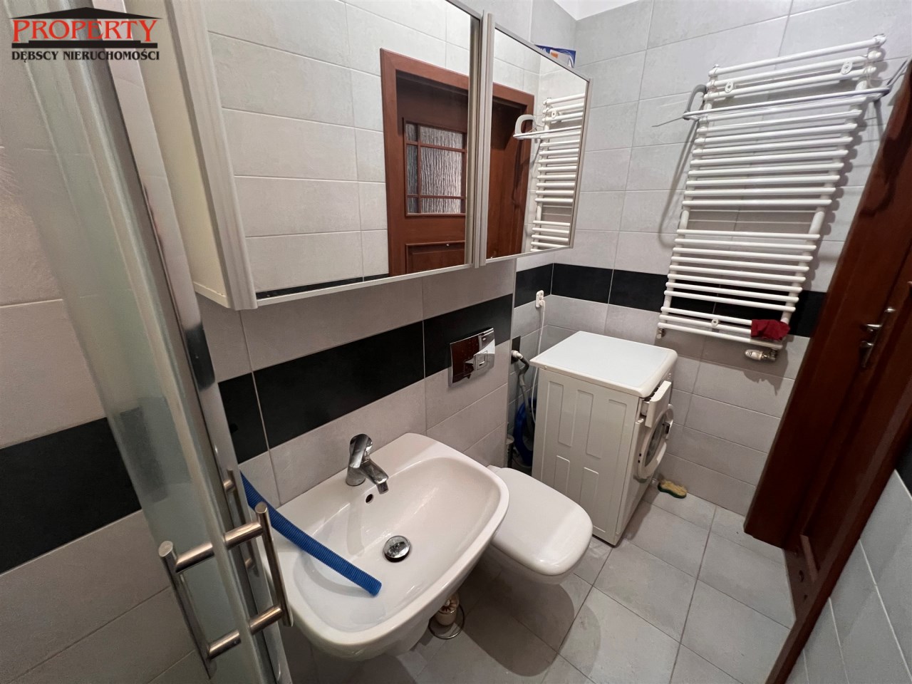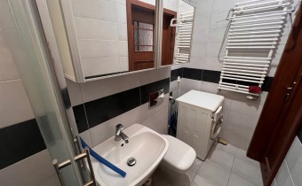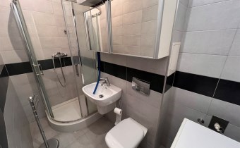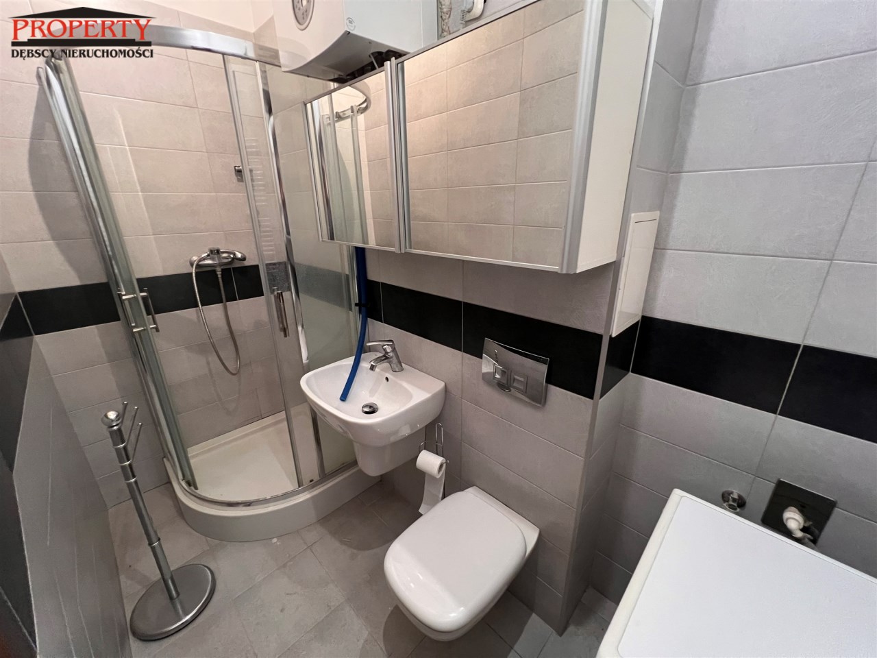 - ŁAZIENKA Z WC: 3,8 m², umywalka z lustrem, kabina prysznicowa, sedes, szafka wisząca, pralka MASTERCOOK,