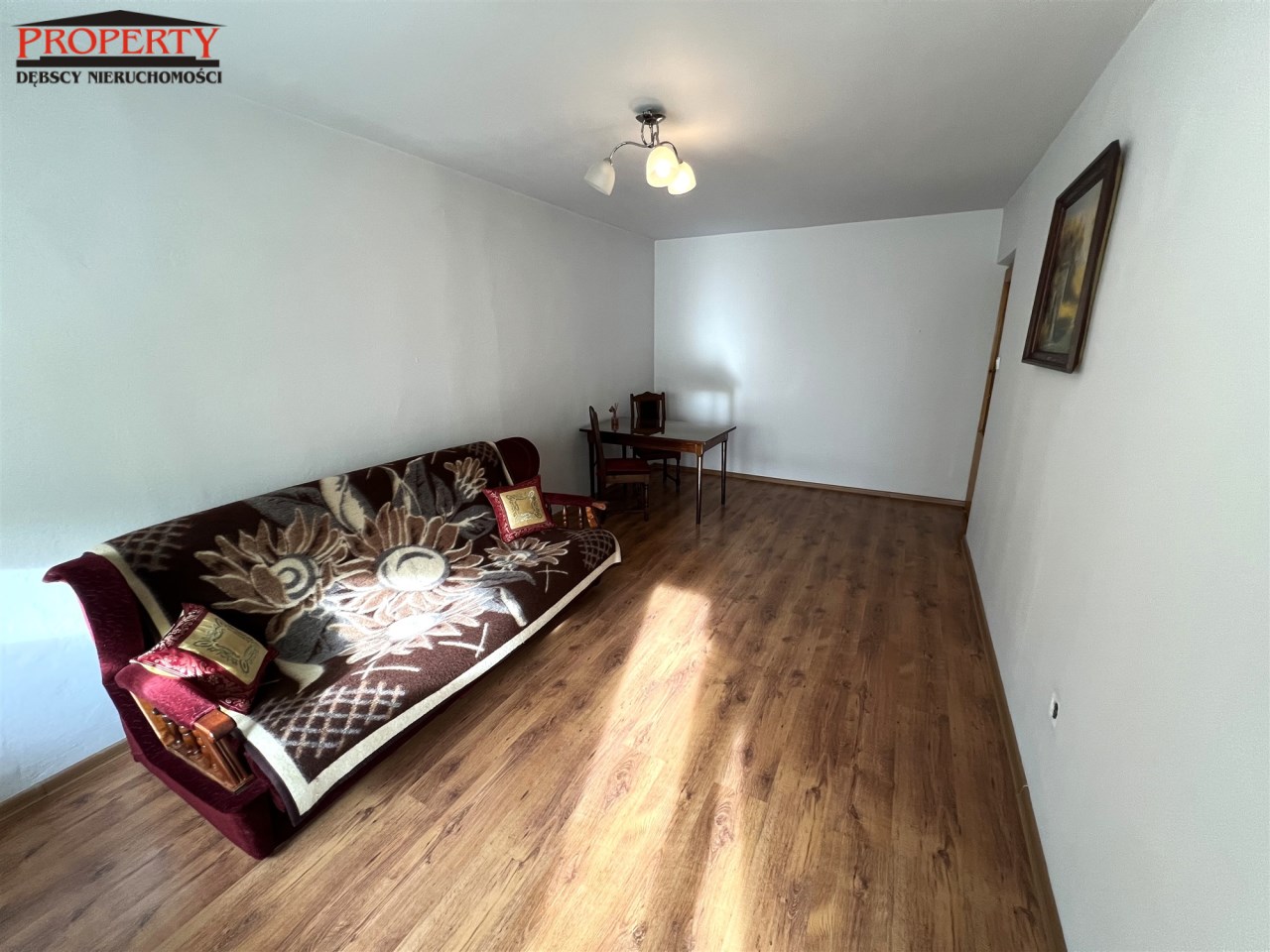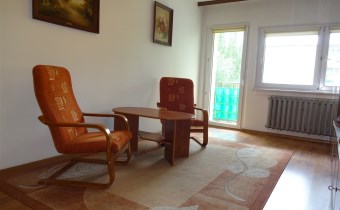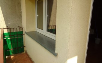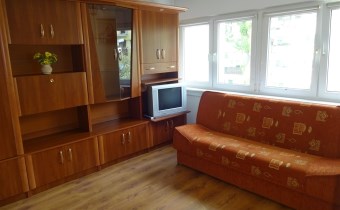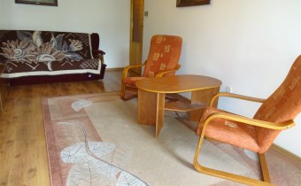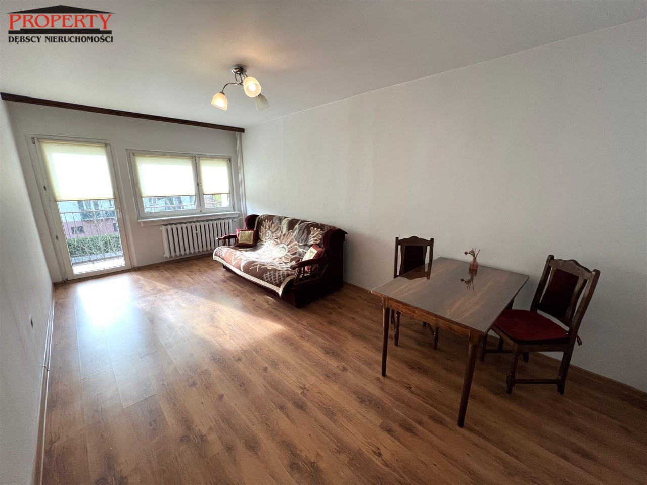- I POKÓJ z balkonem: kanapa, stół + 2 krzesła, żaluzje w oknach,