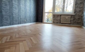 Pokoje 18 i 10 m2 -Na podłodze piękny parkiet, na ścianach gładź z większego pokoju wyjście na balkon.