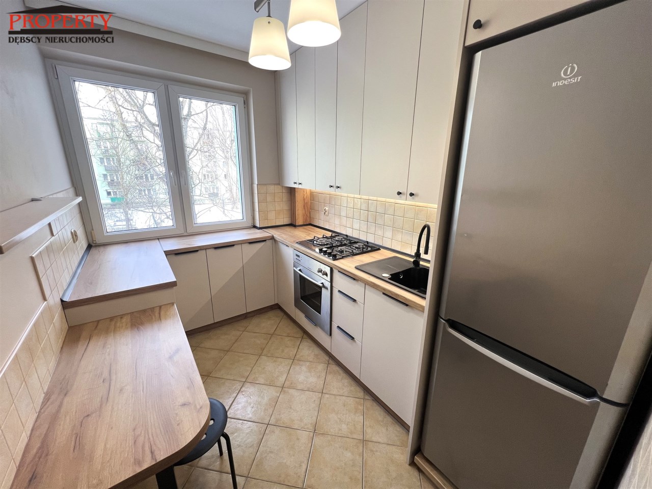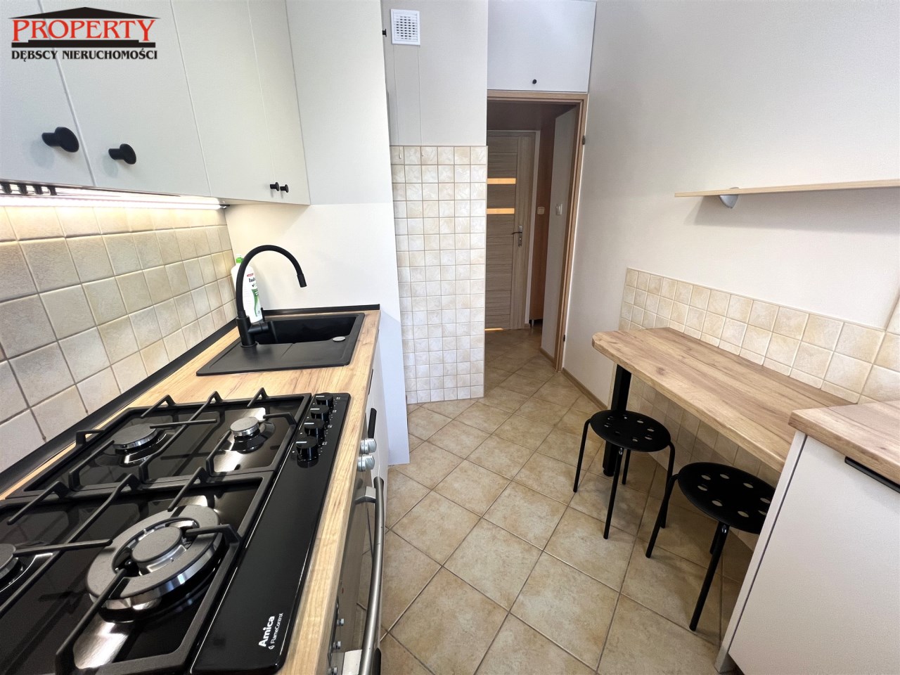 - KUCHNIA: 6,2 m², nowe meble w zabudowie, lodówka z zamrażarką, nowa płyta gazowa, piekarnik elektryczny, stolik + 2 taborety,