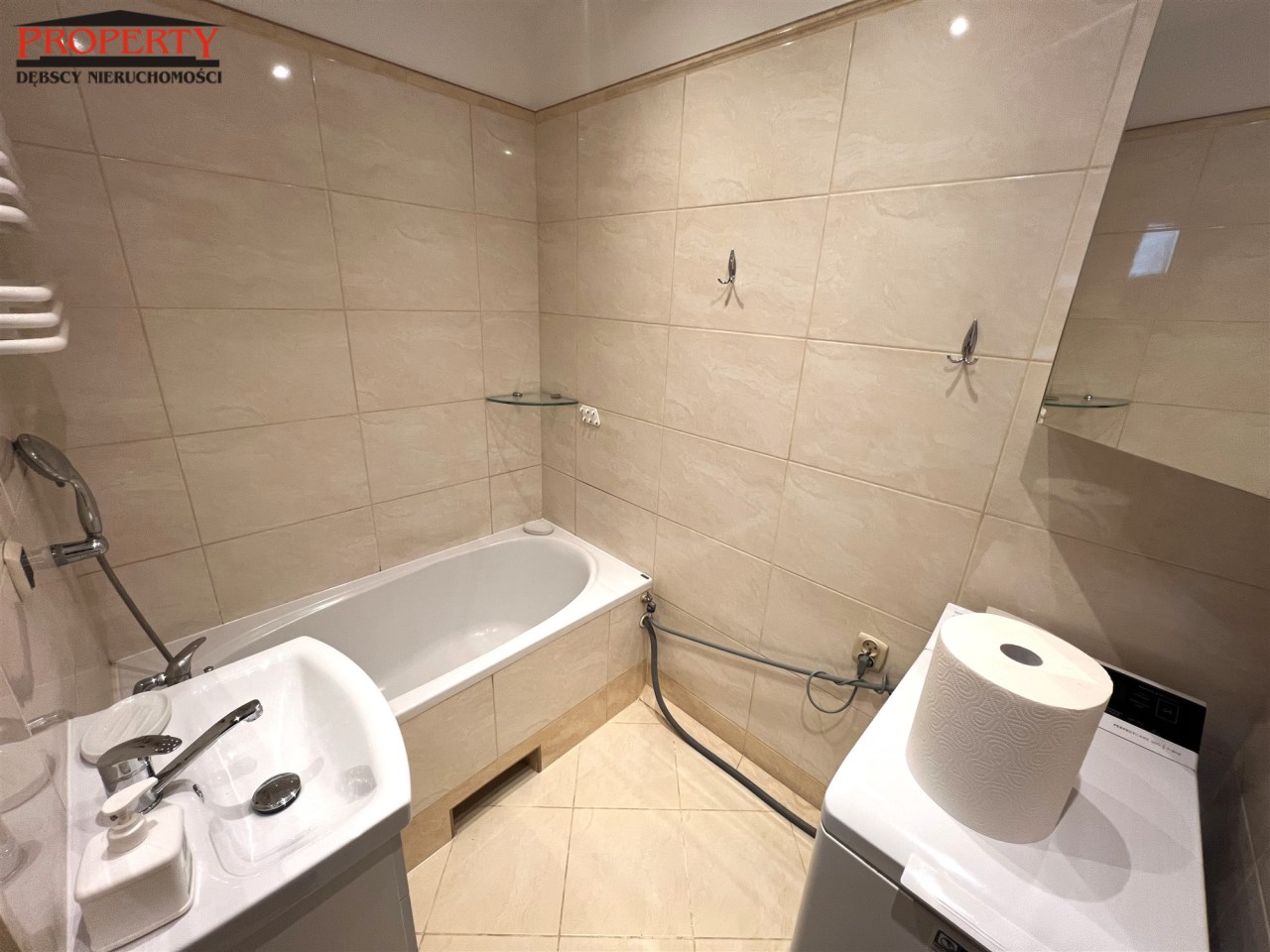- ŁAZIENKA: 2,85 m², wanna, umywalka z szafka i z lustrem, pralka,