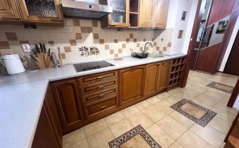 - KUCHNIA/ANEKS KUCHENNY: 7,95 m², zestaw mebli kuchennych w zabudowie, zlewozmywak, okap, płyta elektryczna, lodówka z zamrażarką w zabudowie, piekarnik w zabudowie, zmywarka garnki, sprzęty kuchenne - talerze, filiżanki, szklanki.