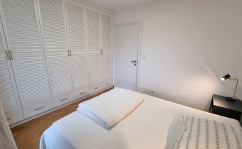 - SYPIALNIA: łóżko podwójne z materacem, szafki nocne, duża szafa w zabudowie.